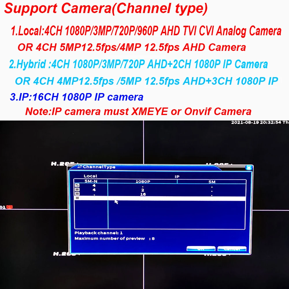 Multi-Camera Format Support: Works with TVI, CVI, AHD, CVBS, and IP cameras.