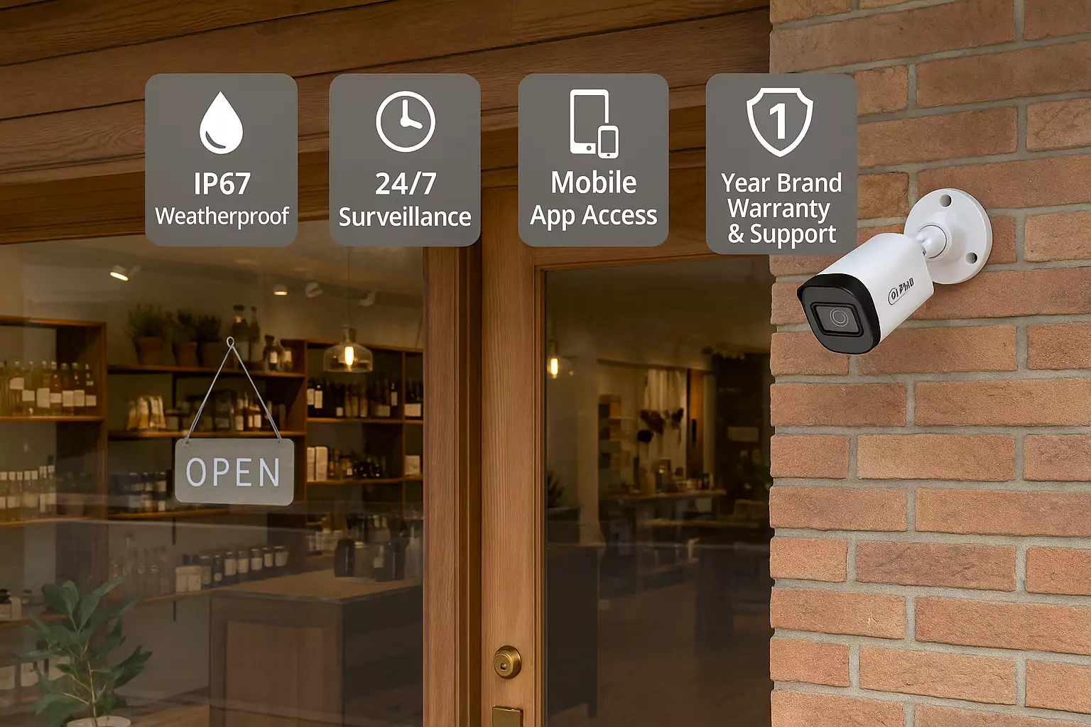 - IP67 weatherproof cameras—indoor & outdoor ready
