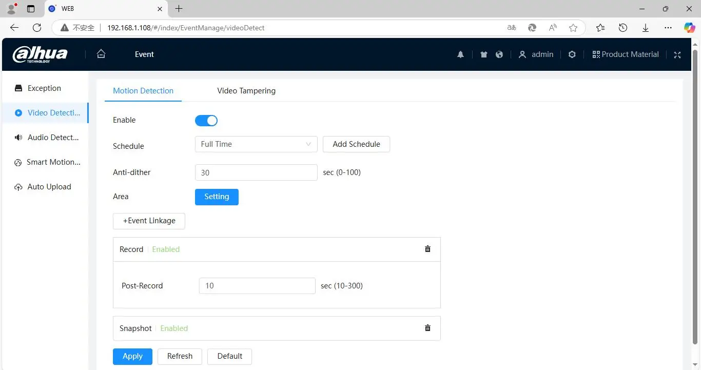 > Abnormality detection: Motion detection, video tampering, audio detection, no SD card, SD card full, SD card error, network disconnection, IP conflict, illegal access, and voltage detection.