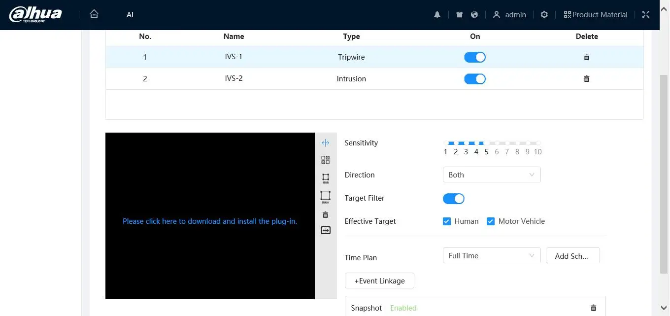 Intrusion, tripwire (the two functions support the classification and accurate detection of vehicle and human); |