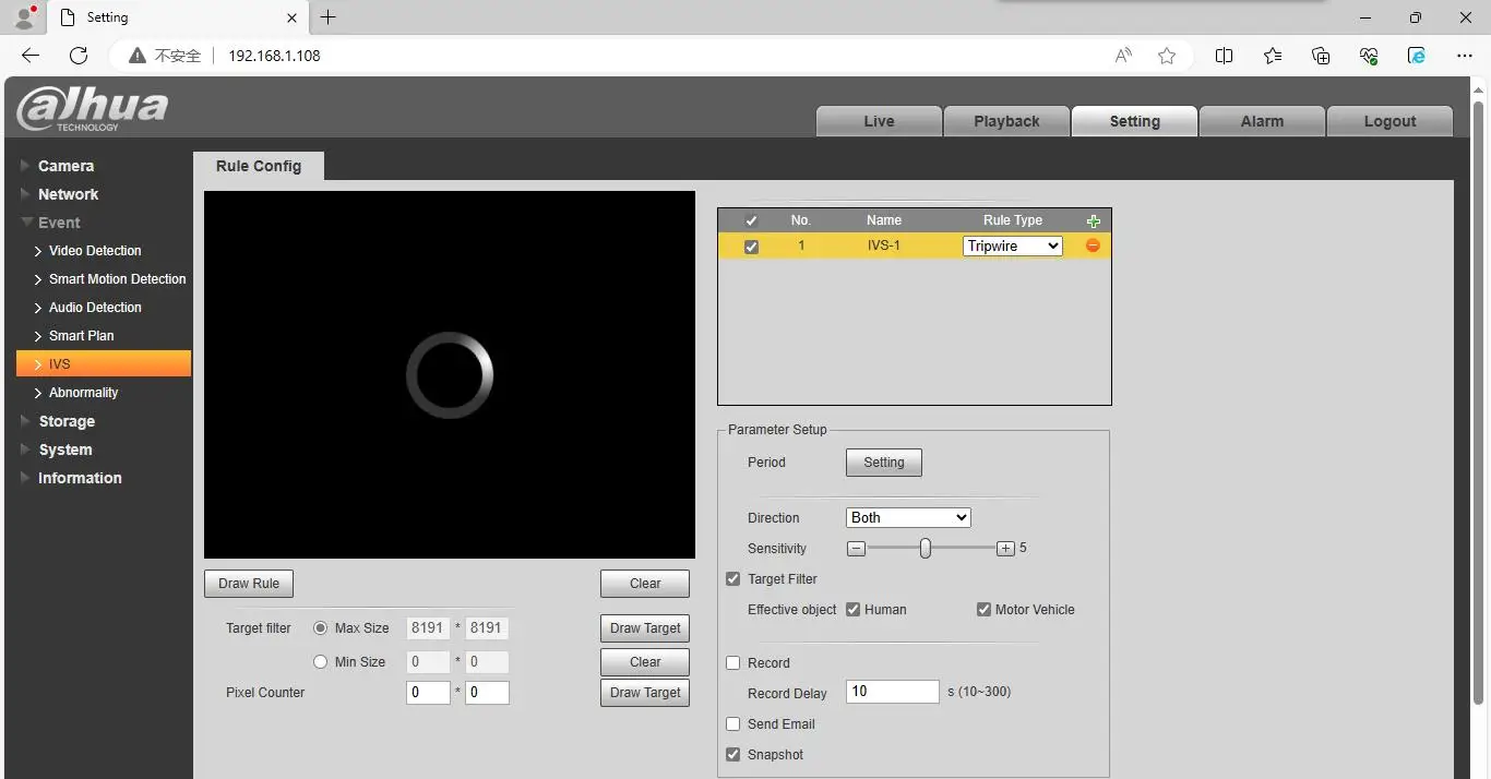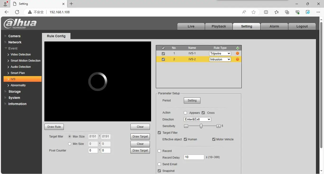 - > Intelligent monitoring: Intrusion, tripwire (the two functions support the classification and accurate detection of vehicle and human).