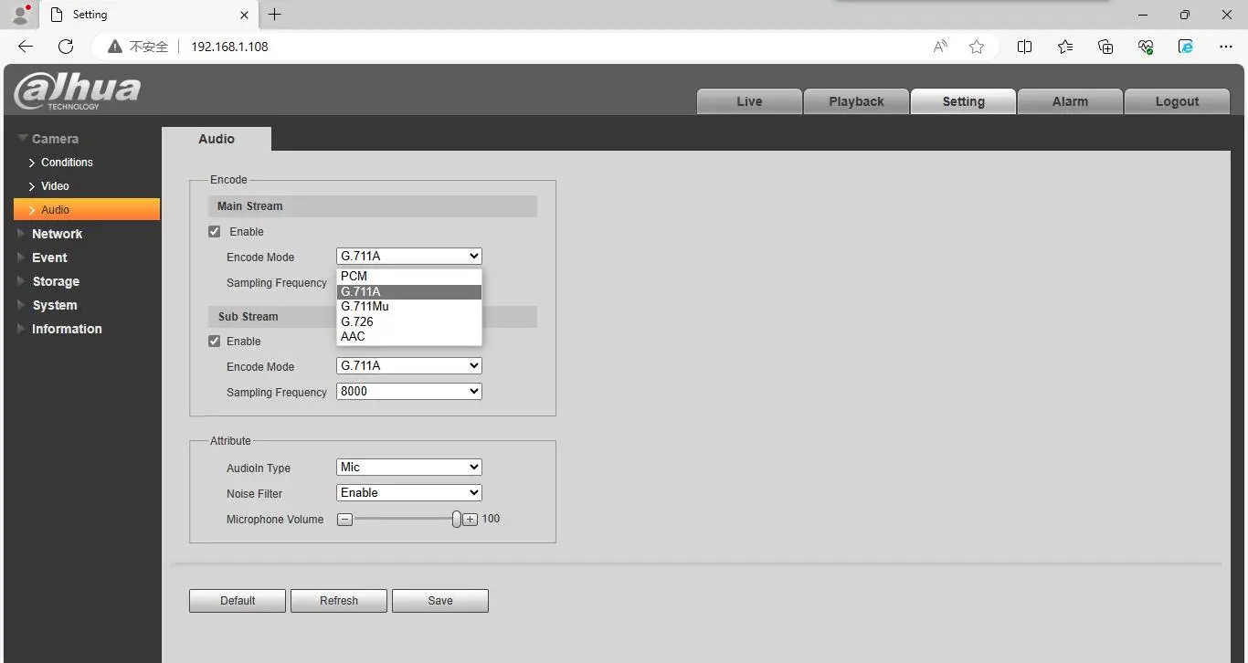 H.265; H.264; H.264H; H.264B; MJPEG (Only supported by the sub stream) |