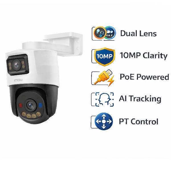 1️⃣ Dual 10MP PoE PT Camera – Equipped with two 5MP lenses (5MP+5MP) for wide coverage and high-detail surveillance.