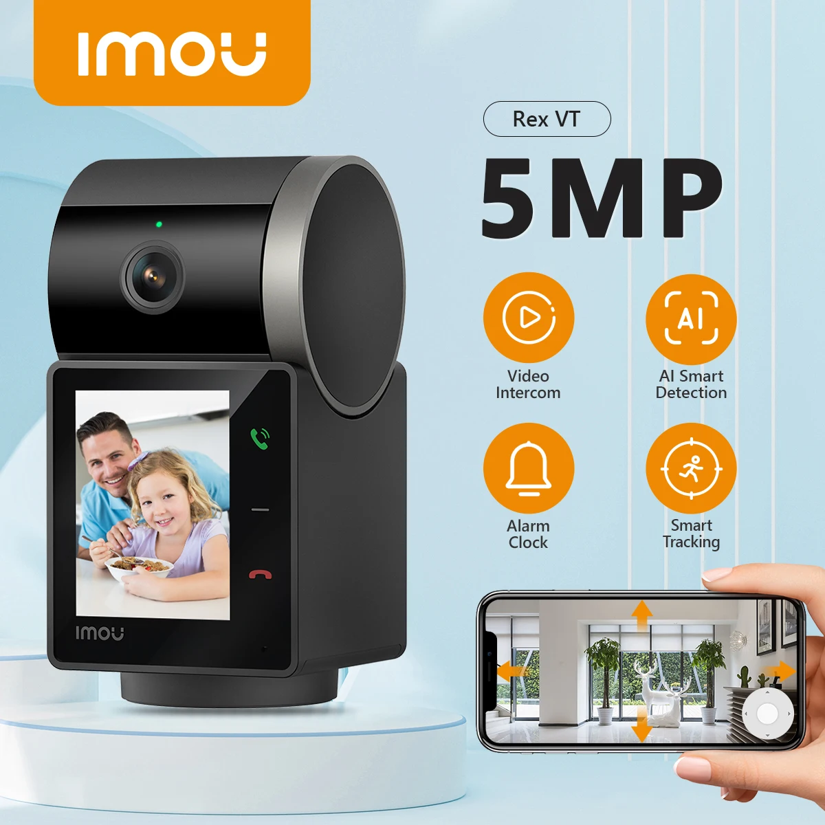 IMOU Rex VT 5MP 3K Indoor Screen Video Camera Human Pet Detection 2.4inch Display PT 360 Two Way Talk One-Touch Call WiFi Camera