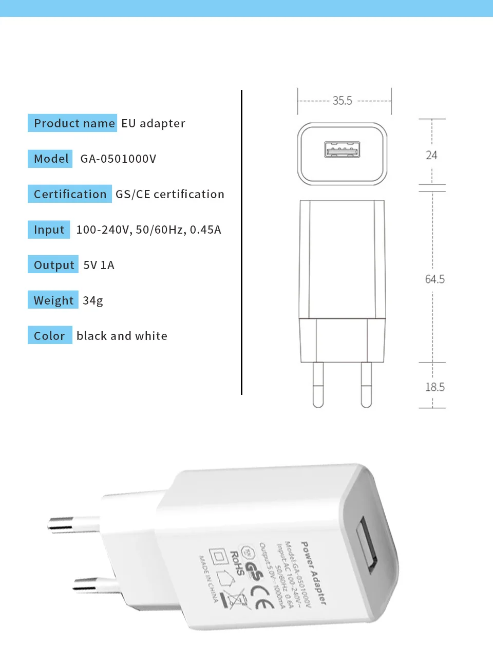 Product name:EU adapter