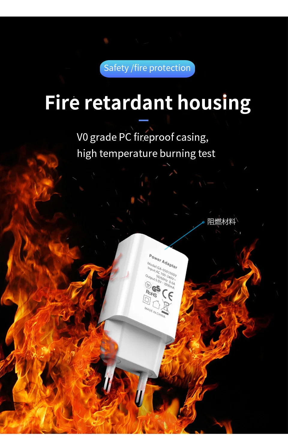 The shell adopts the European Union 94V0 standard, V0 grade PC fireproof shell