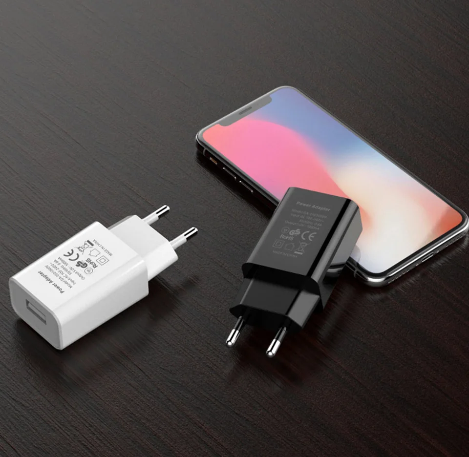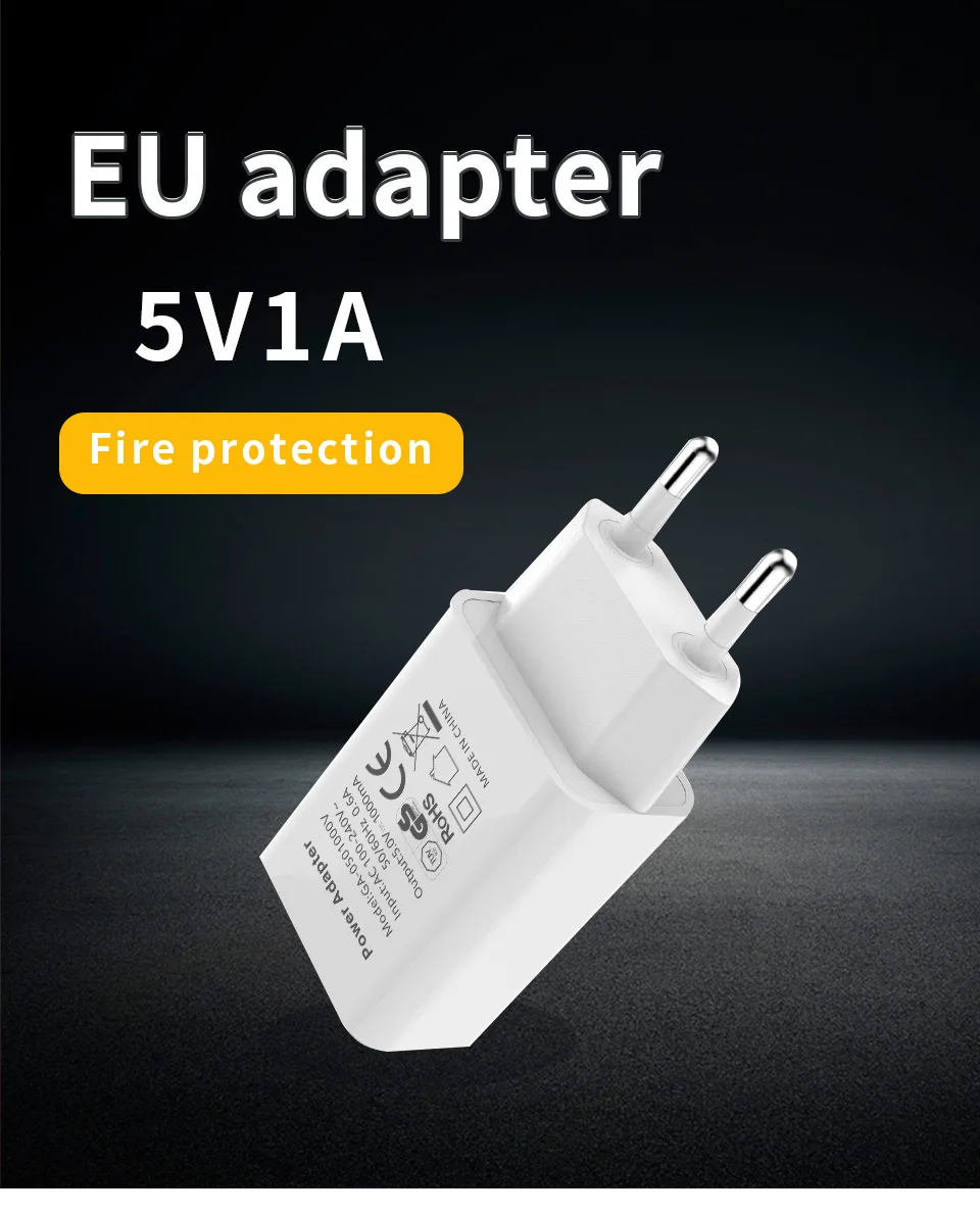 Quality EU Adapter DC 5V 1A USB Interface Convenient Travel Phone Charging Head Fireproof Durable Lithe Black White Charge Plug