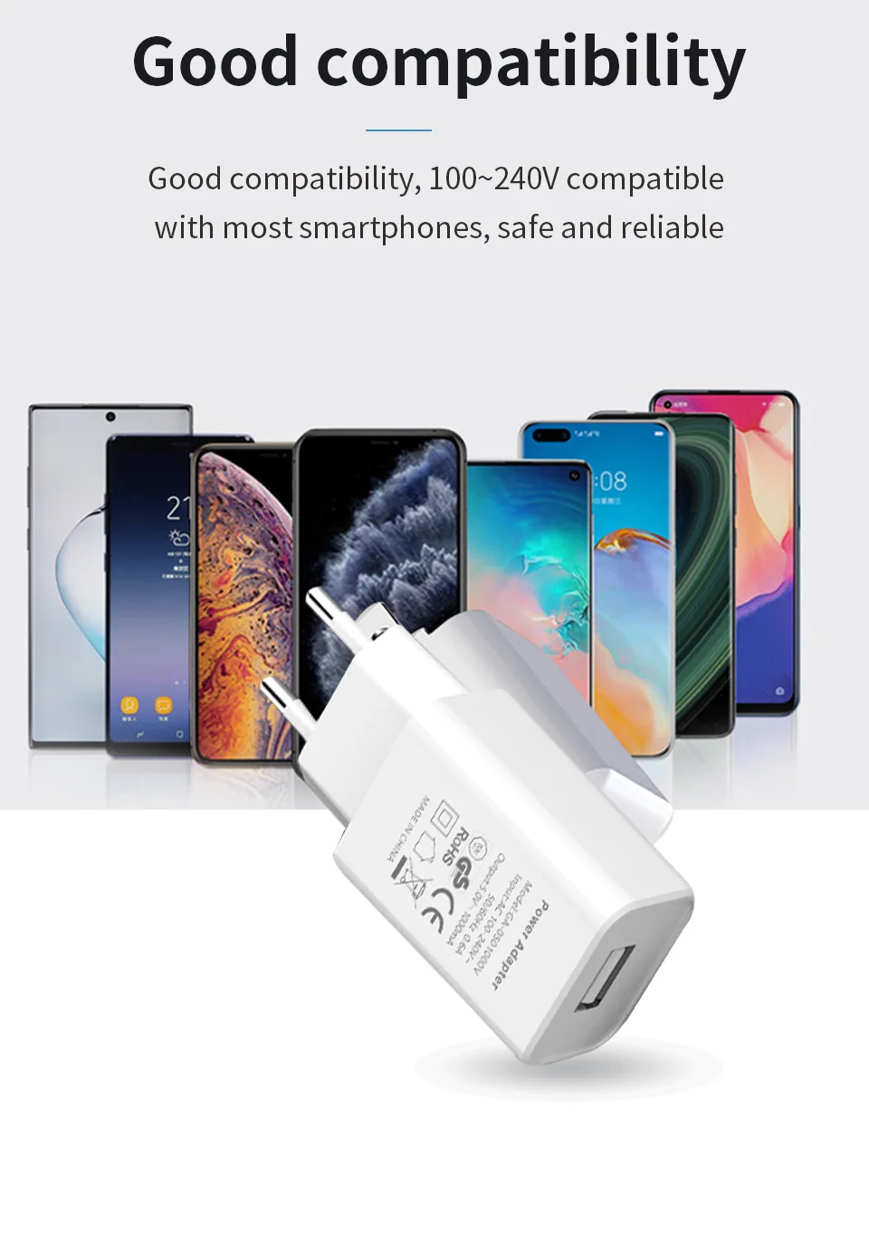 Be the first to review “Quality EU Adapter DC 5V 1A USB Interface Convenient Travel Phone Charging Head European Charge Plug” Cancel reply