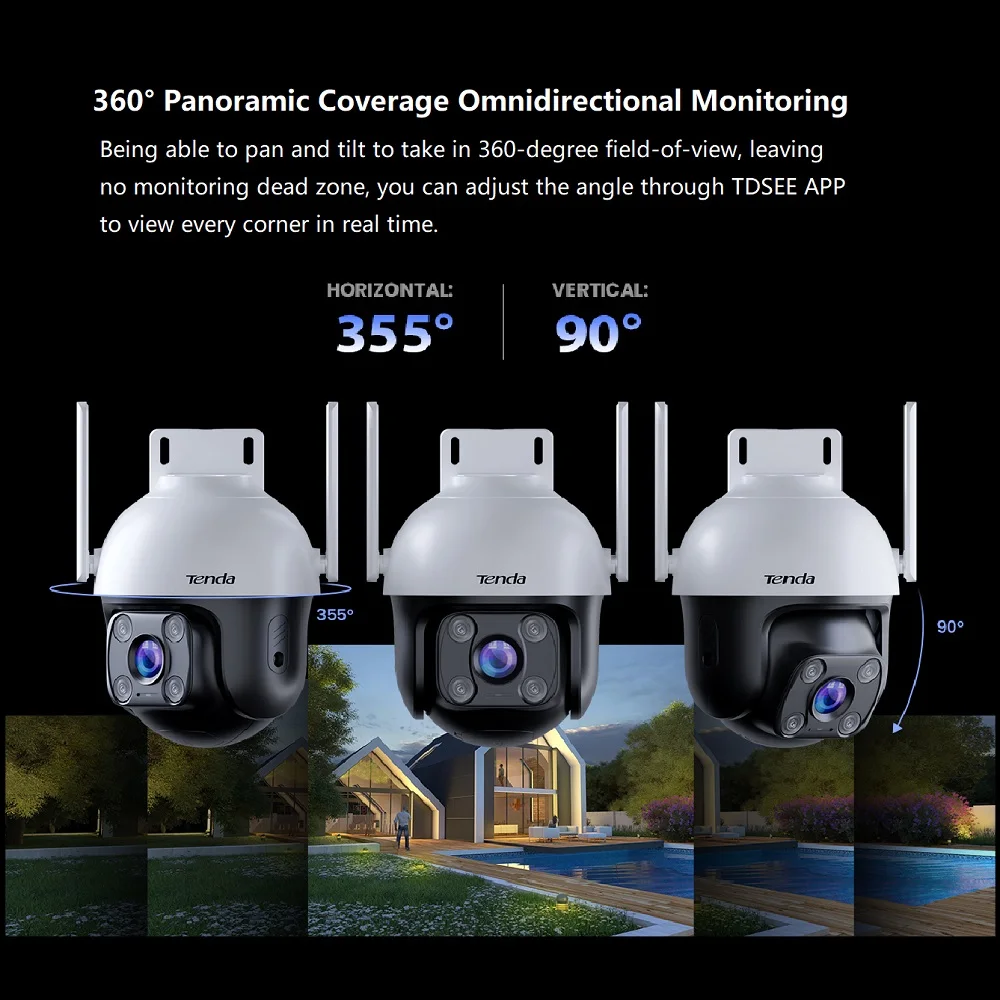 Tenda 1080P Outdoor Wi-Fi Pan/Tilt Camera 360 video camera Ai Human Detect Auto Tracking Wireless Outdoor Surveillance Camera