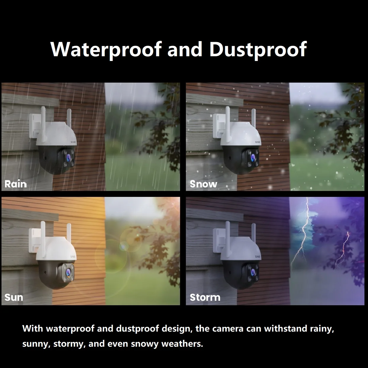 With waterproof and dustproof design, the camera can withstand rainy, sunny, stormy, and even snowy weathers.