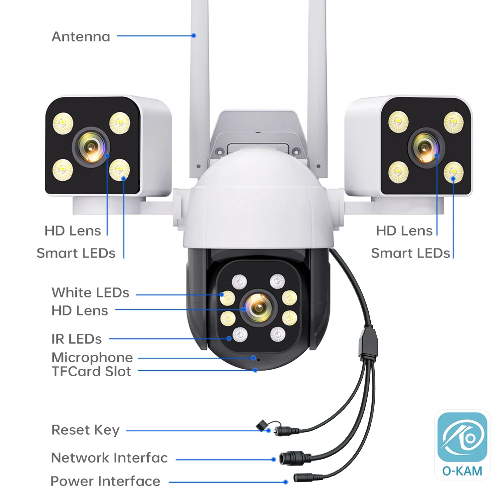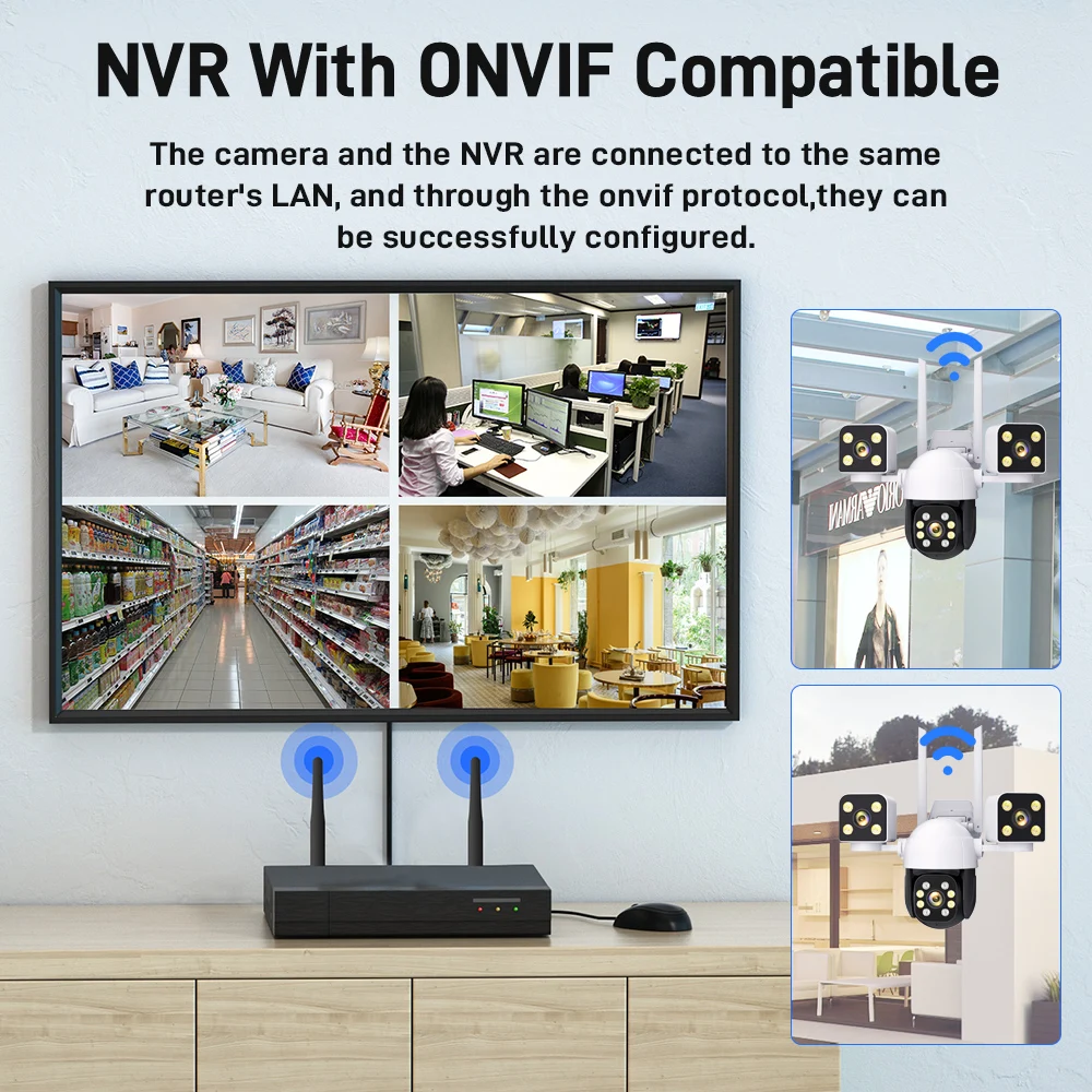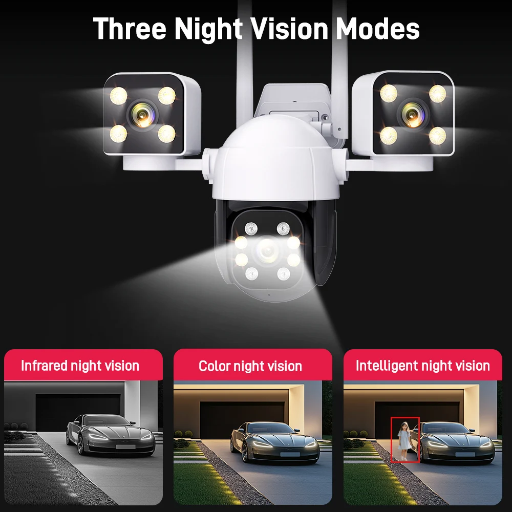 V380 Pro Smart WiFi Security Cameras 9MP 4K 3 Lens 3 Screens Waterproof Wireless CCTV PTZ 360 Intelligent Outdoor Surveillance Camera