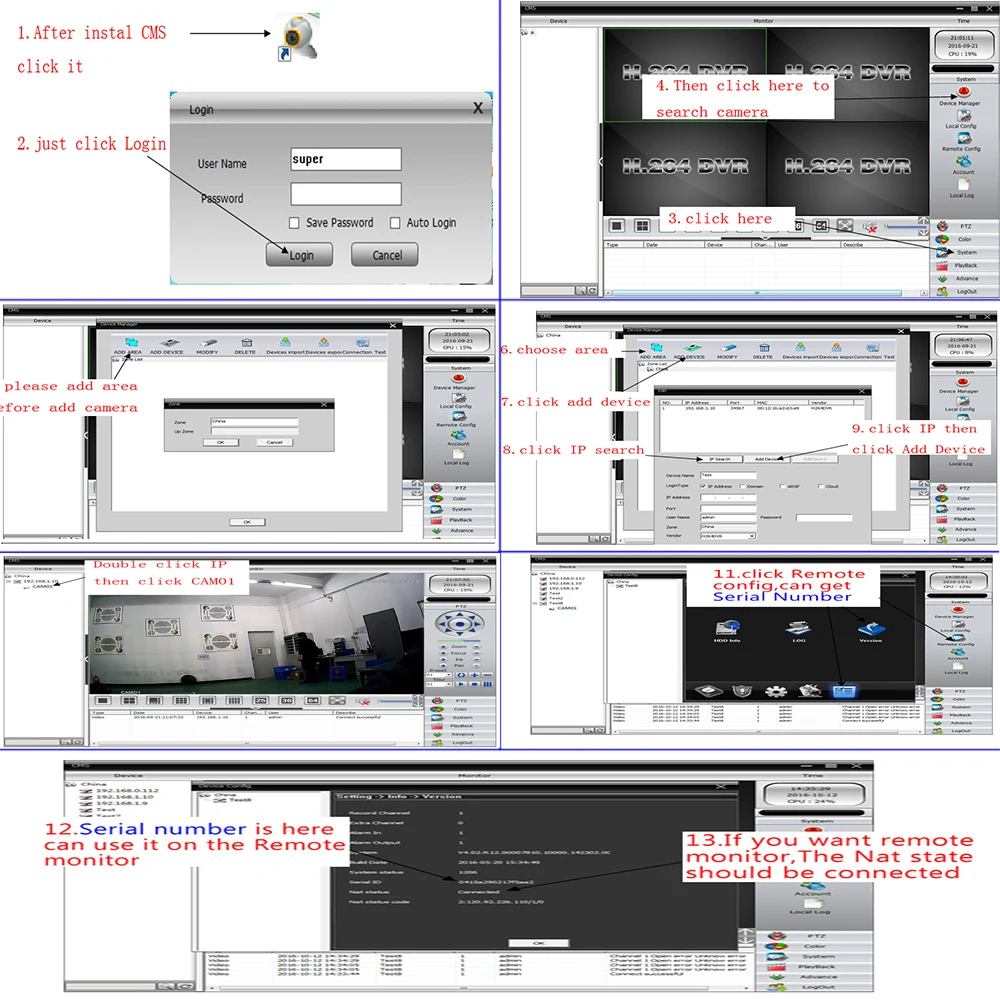 Download Xmeye APP–open it–choose log on locally–add device–input seriac number to login